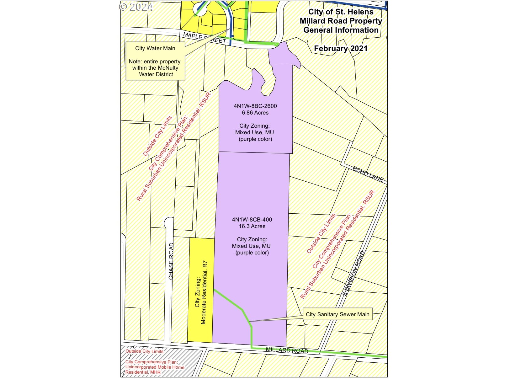 Check out this incredible opportunity in up and coming ST. Helens, Oregon. This property is zoned for mixed use, offering a possibility of around 100 lots for single-family homes or duplexes. It also has the potential for around 350 - 400 units for multi-family living, like apartments. It is a great chance to invest in this growing area!